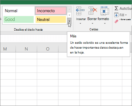 - Estilos para las celdas u hojas de cálculo