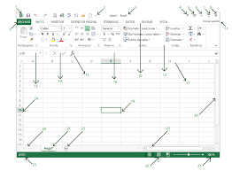 Descripción de cada uno de los elementos de la pantalla de la hoja de cálculo electrónica excel 2013.